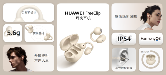 发布会上,华为还推出了华为FreeClip耳夹耳机暖星云配色,自然简约却又不失温暖,中性化的色彩选择,搭配日常穿搭,适合更广泛的消费者佩戴。同时,耳机采用舒适亲肤材质,拥有丝雾哑光质感,触感温润舒适,与流光紫、星空黑一样,在舒适稳定佩戴的同时,诠释时尚先锋美学,运动、休闲、商务等多种场合,都能随心佩戴。华为FreeClip耳夹耳机轻盈小巧,却具备超强的续航实力。搭配充电盒整机播放音乐续航长达36小时,更有左右耳自适应识别、多设备连接等智慧功能,为消费者带来便捷贴心的交互体验,助力用户运动更洒脱,办公更无拘,生活更时尚。