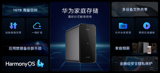 基于HarmonyOS 4.2全新升级,华为家庭存储正式推出「应用数据备份」功能,该功能的发布意味着NAS领域首次打通终端应用数据链路,实现应用数据的全量备份。透过该功能,对于用户最大的价值,莫过于用户可轻松实现微信聊天记录全量备份,包括文字记录、照片视频、文件等内容。用户亦可开启7天自动备份,备份记录可永久保留。与此同时,用户可以指定任一备份记录进行恢复,成为守护全家人“美好记忆的保险柜”!此外,华为家庭存储始终坚持为用户带来智慧安全的数据存储体验。只需轻触NFC区域,即可实现一碰扩容,享受至高16TB海量空间,无论是百万高清照片,还是万部蓝光电影均可轻松容纳。对于热爱拍照记录生活,尤其是宝爸宝妈们来讲,AI相册可智能分类照片,生成宝宝专属相册,管理查找非常便捷。同时,基于HarmonyOS分布式访问功能,华为家庭存储支持16个账户登录,可实现多设备文件共享,协作传输无缝流转。