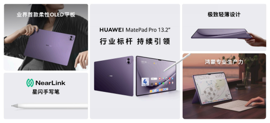 作为华为平板的巅峰之作,华为MatePad Pro 13.2英寸拥有薄至5.5mm、轻至580g的超轻薄机身。更有13.2英寸超大柔性OLED屏,3.4mm超窄边框,以及94%的惊艳屏占比;星闪技术、HarmonyOS 4.2强力加持,实现了视野边界、交互体验和生态边界的全面突破。