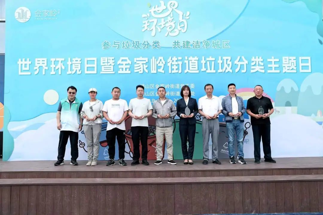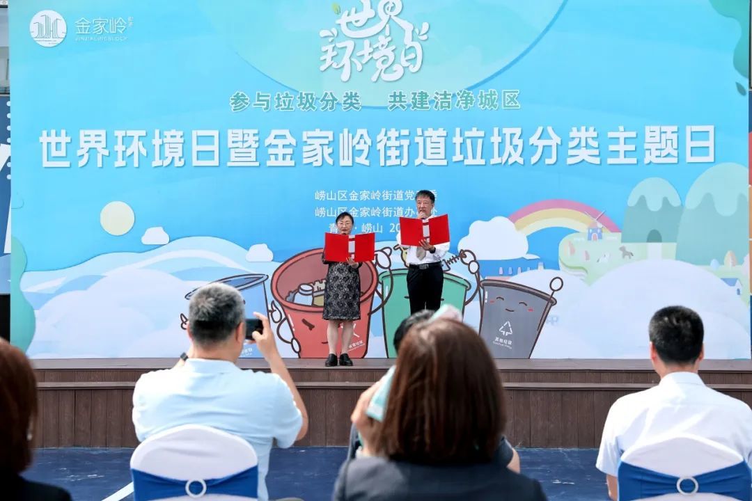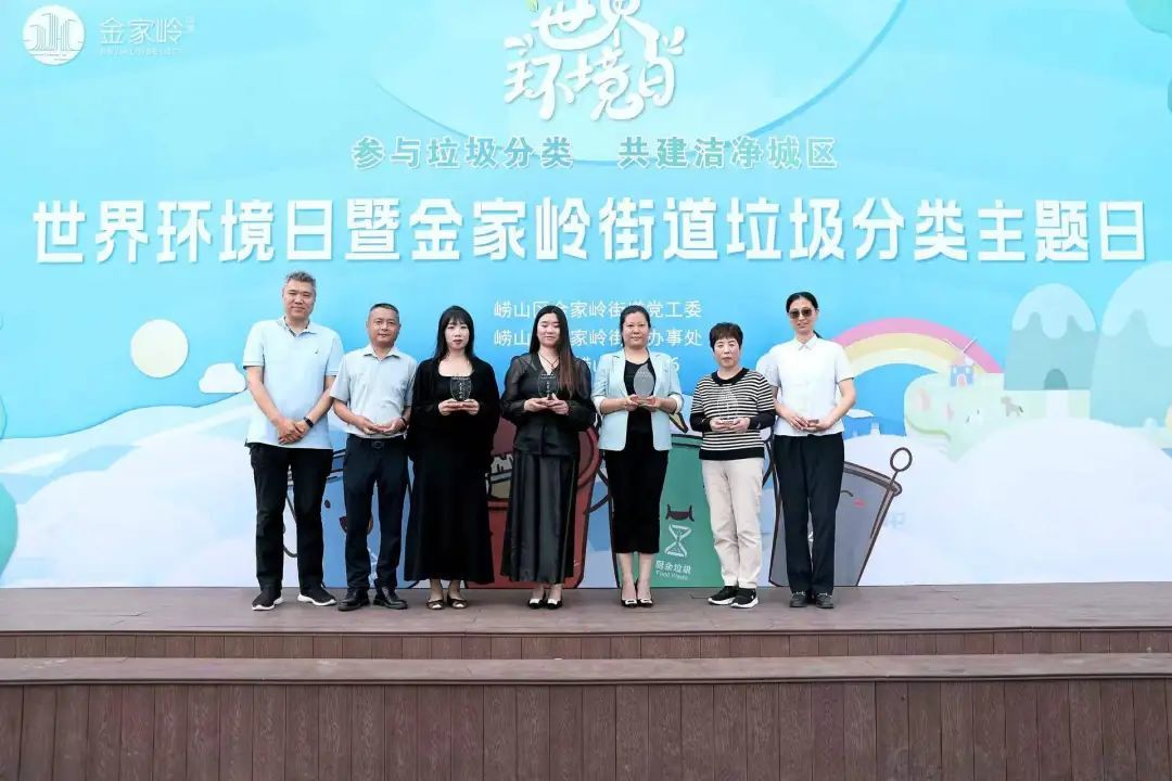 榜样引领,聚力前行。活动现场为金家岭街道辖区内的青岛市垃圾分类五星小区颁发奖杯,表彰其在垃圾分类工作中的努力和付出。目前,金家岭街道还有13个五星小区正在有序打造之中。