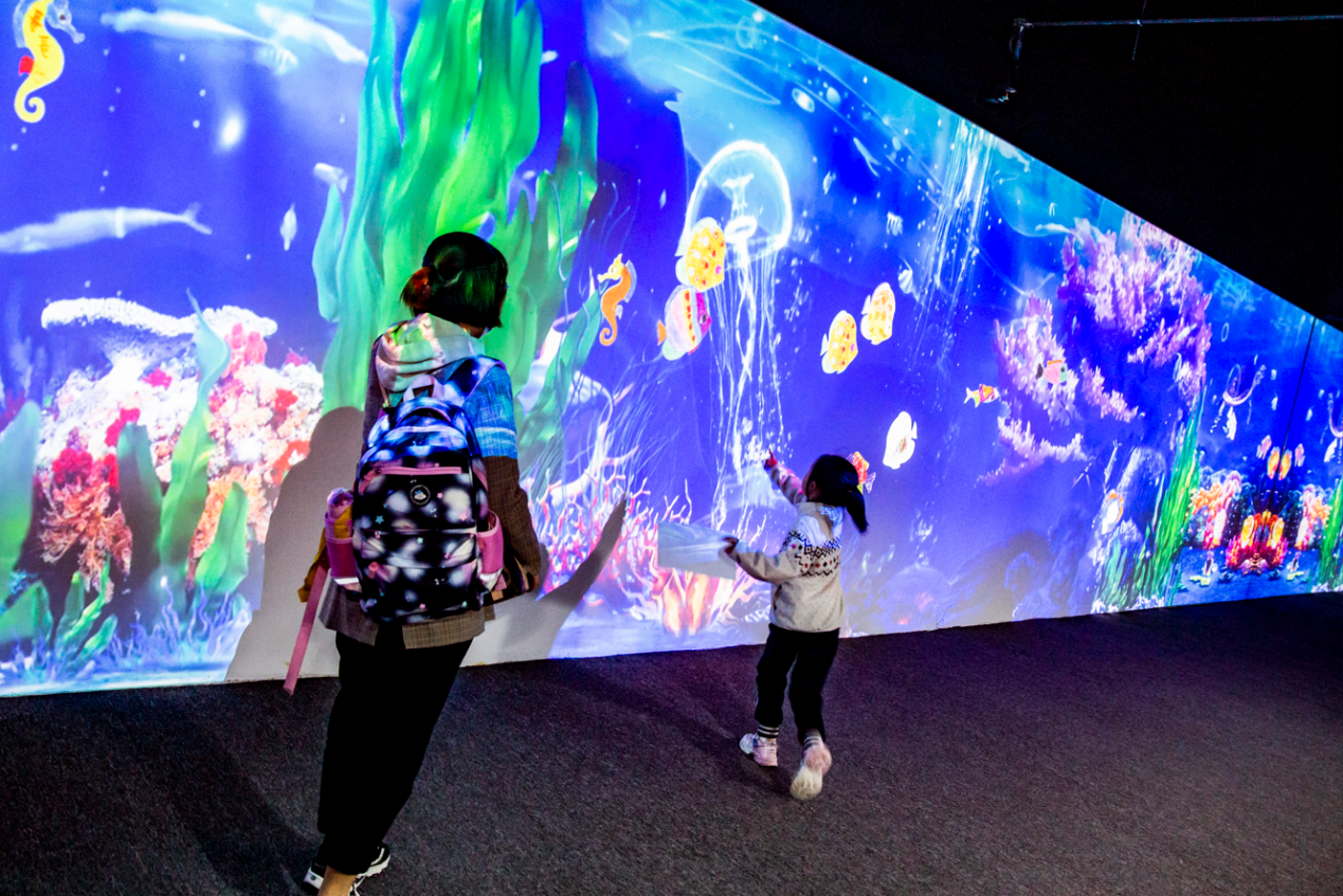 《深海造梦》:在这个空间里,你可以拿起画笔在画纸上涂鸦,描绘出自己梦中的鱼的颜色和形状。然后放生深海,看着它与其他的鱼儿一起自由遨游。