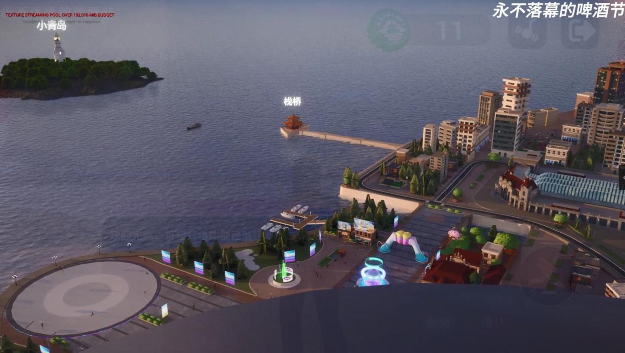 “永不落幕的啤酒节”是市南区第三届上街里啤酒节的“镜像虚拟世界”。该平台利用Unreal Engine 5引擎与云计算技术的图形渲染技术,打造一个拥有逼真图形渲染效果,精细的物理模拟和强大的交互性3D云端渲染沉浸式产品体验世界。