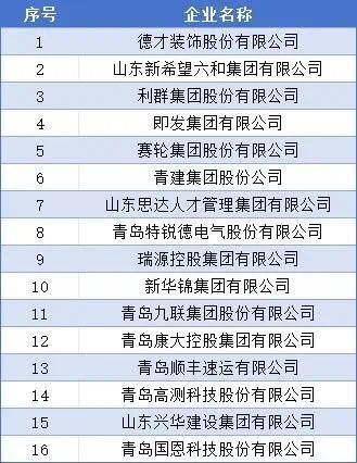 山东民营企业吸纳就业100强名单(青岛16家)