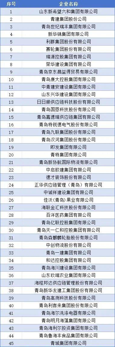 山东民营企业200强名单(青岛45家)