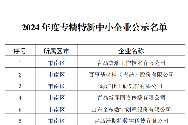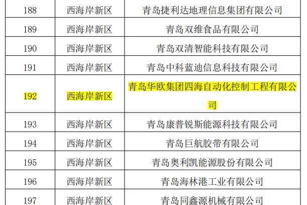 近日,在青岛市民营经济发展局公布的2024年度专精特新中小企业公示名单中,青岛开发区投资建设集团有限公司旗下华欧四海自动化控制工程有限公司、华欧四海机械制造有限公司、华欧砼业有限公司成功入选。