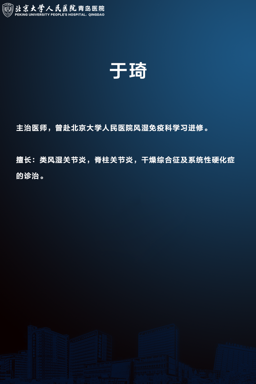 擅长:类风湿关节炎,脊柱关节炎,干燥综合征及系统性硬化症的诊治。