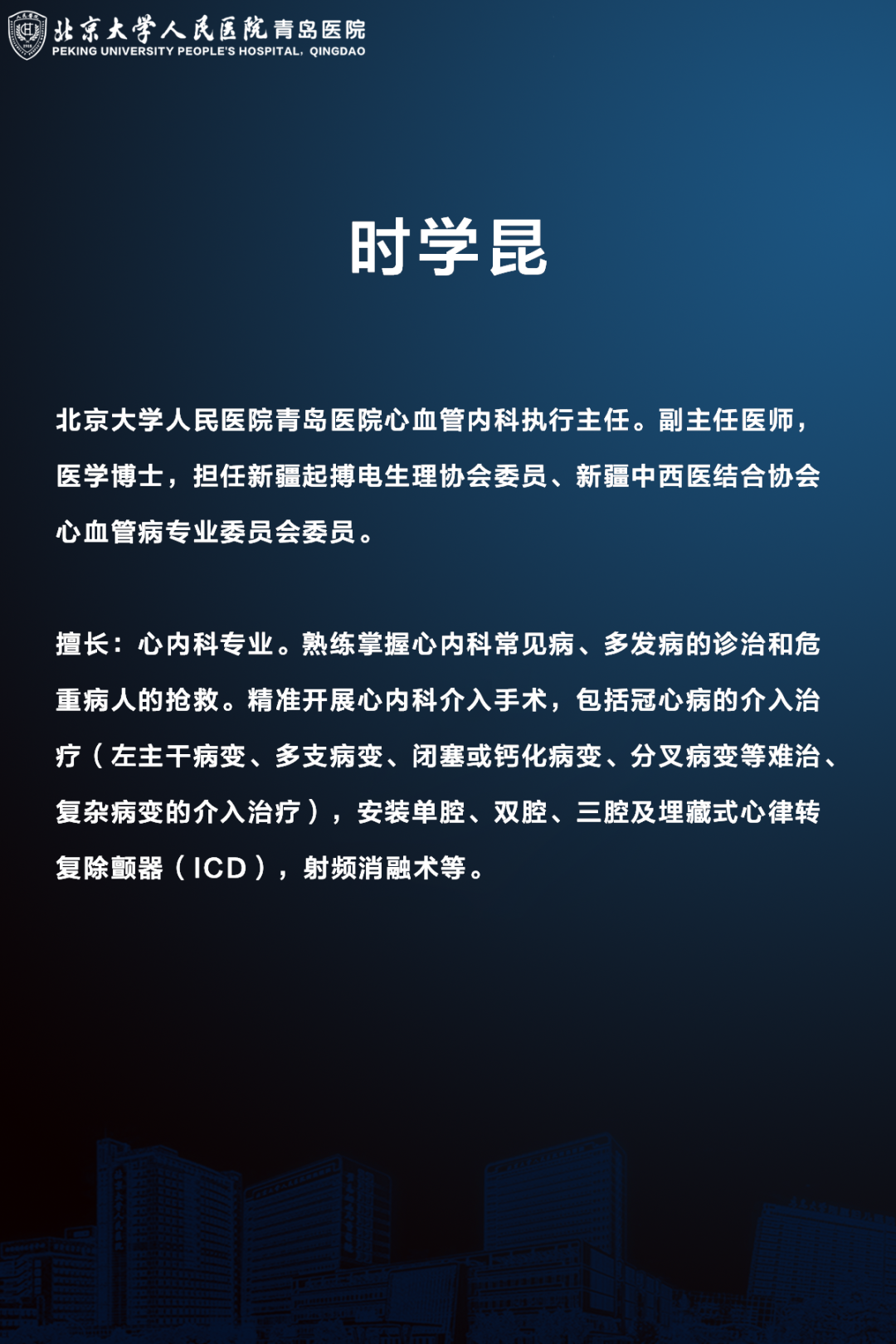 副主 任医师,北京大学人民医院青岛医院心血管内科执行主任 。