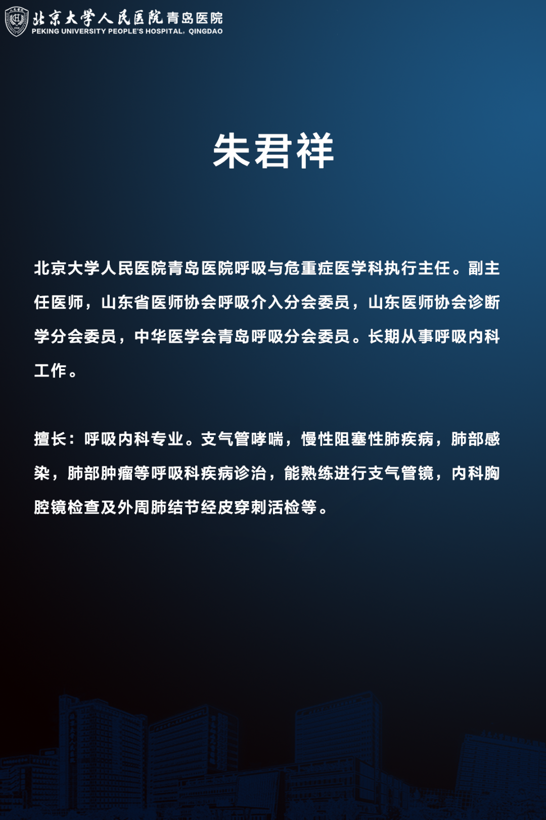 副主任医 师,北京大学人民医院青岛医院呼吸与危重症医学科执行主任。