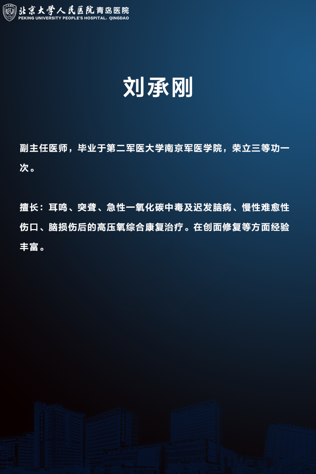 擅长:耳鸣、突聋、急性一氧化碳中毒及迟发脑病、慢性难愈性伤口、脑损伤后的高压氧综合康复治疗。在创面修复等方面经验丰富。
