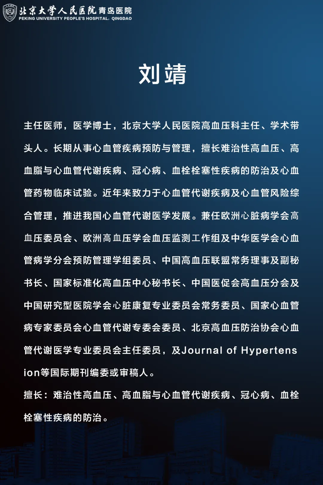 主任医师,医学博士,北京大学人民医院高血压科主任。
