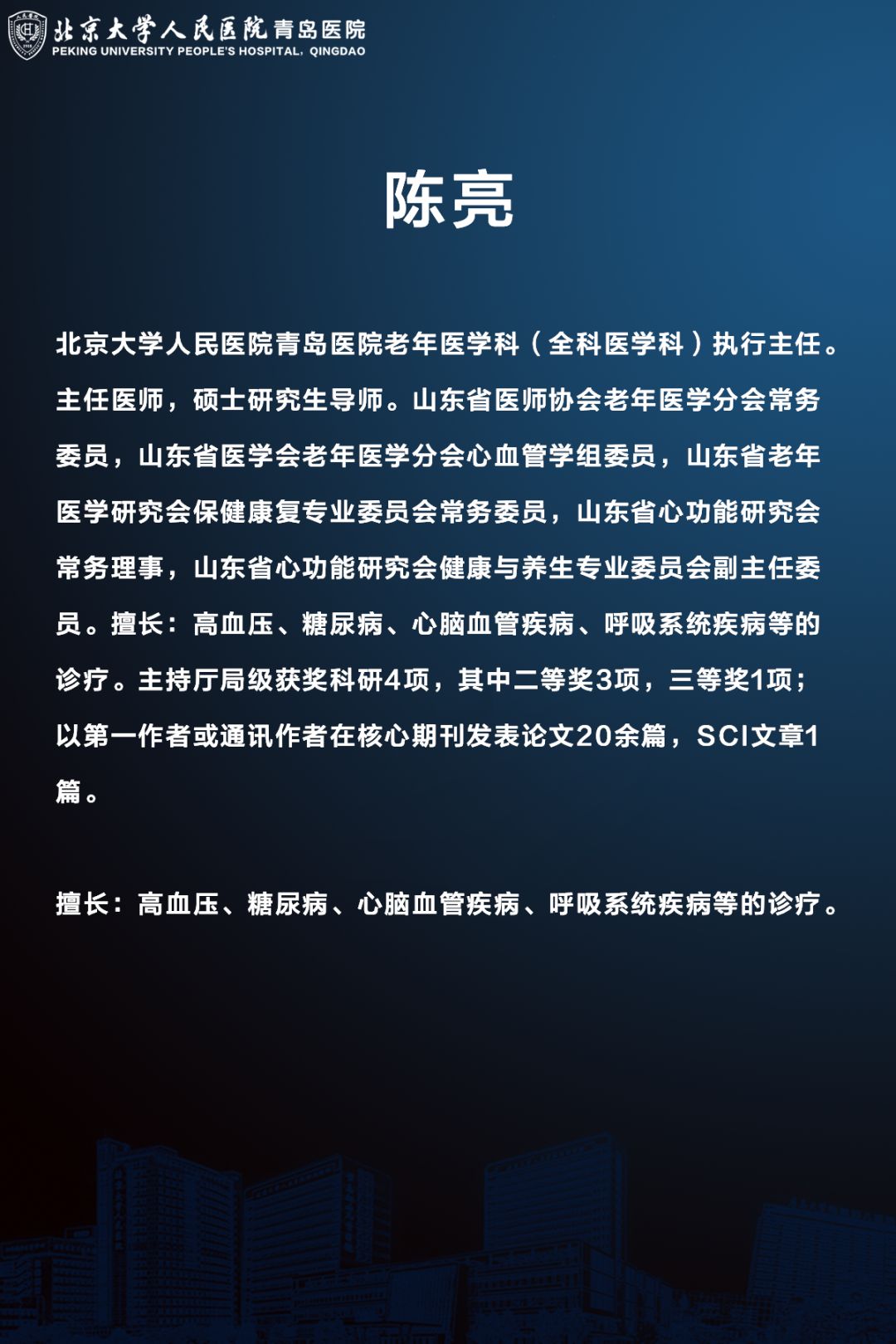 主任医师,北京大学人民医院青岛医院老年医学科(全科医学科)执行主任。