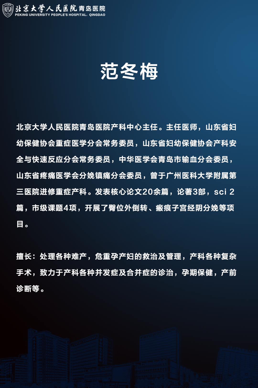 主任医师,北京大学人民医院青岛医院产科中心主任。