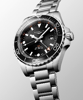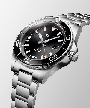 兼具卓越性能与优雅风格,康卡斯潜水系列专为那些热爱挑战、探索未知的人士量身打造。这款直径43毫米的腕表搭载浪琴表L844.5专属GMT机芯。内置硅游丝与非磁性材质的创新组件,防磁性能可达ISO764标准的十倍以上,保证了超高的走时精度,并且拥有长达约72小时的动力储存。腕表的设计灵感源自水上运动,黑色太阳纹表盘、单向旋转黑色陶瓷表圈、高达300米的防水性能、旋入式表冠与表背成就其标志性特色。腕表配备精钢表链,搭配可微调的双折式安全表扣。