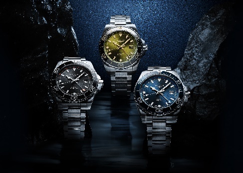 全新康卡斯潜水系列GMT腕表,搭配H形链环组成的精钢表链,或是蓝色及黑色橡胶表带。所有表带均采用双折式安全表扣设计,搭载微调系统,佩戴更舒适。