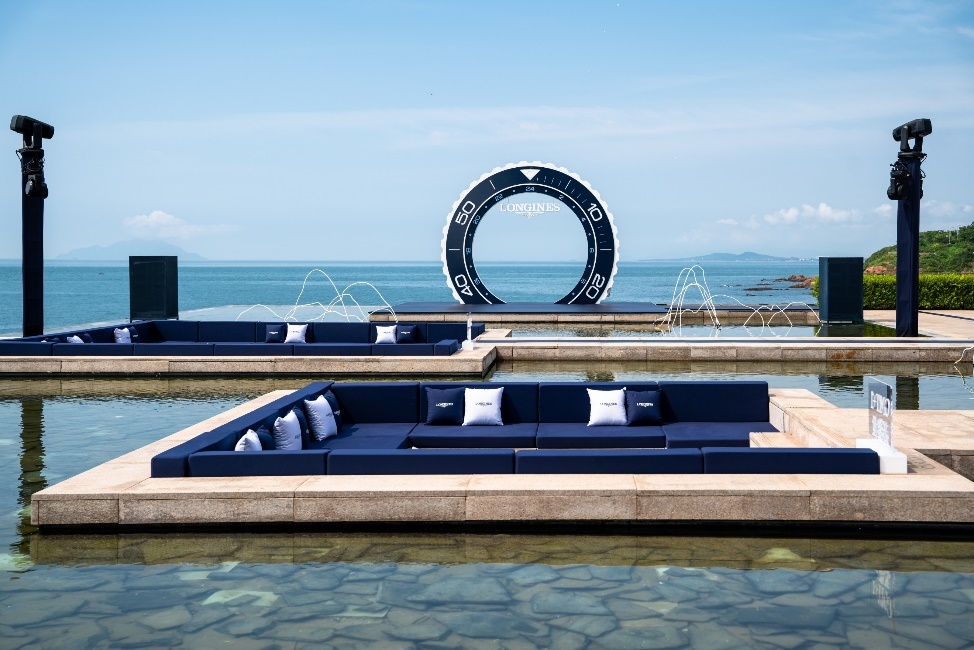 发布会现场,浪琴表从探险精神中汲取灵感,以腕表所呈现的GMT时区和强大的300米防水功能出发,为现场来宾打造了一场沉浸式的海天一色的优雅派对。现场全新康卡斯潜水系列GMT的表盘元素在场地内随处可见,宾客们还可以自己转动GMT幸运转盘,抵达想要征服的时区,尽情体验这趟奇妙的旅程。派对现场以无限的视野,让来宾们探索无限的可能性,领略浪琴表的精湛工艺与制表传承。