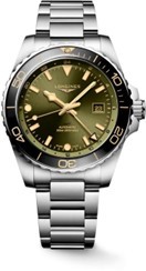 该款计时表搭载浪琴表专属自动上链机械机芯,内置硅游丝及采用非磁性材料制成的创新组件。直径42毫米的精钢表壳,防水深度可达100米。配有远山绿色太阳纹表盘,3、6、9、12时位置覆有Super-LumiNova夜光涂层。小秒盘和计时盘与陶瓷测速表圈均为远山绿色,与表盘形成鲜明对比。搭配精钢表链。