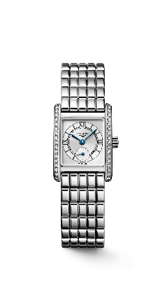 全新迷你黛绰维纳系列中,每一款腕表均采用21.50毫米x 29.00毫米的矩形精钢表壳,搭载高精准度L178石英机芯。表壳镶饰38颗上品韦塞尔顿IF-VVS级钻石,璀璨夺目。Cosmo圆形表盘与矩形表壳相映成趣,尽显卓然优雅。全新设计的精钢表链,由198个链节组成,烘托腕表的钻石华彩,亦为佩戴者带来非凡舒适感。