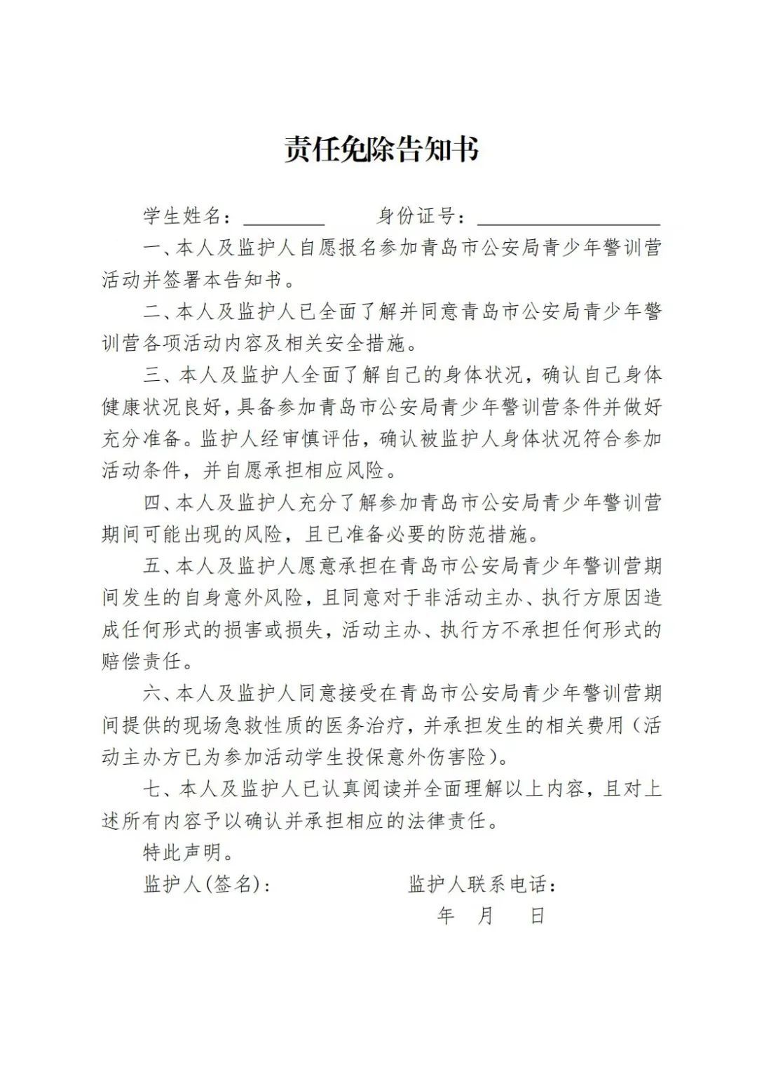 ③在遭遇特殊天气状况时,请关注青岛公安发布的关于警训营延期举行的提醒通知。