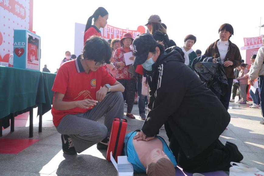 此外,活动现场还设置了公益市集,巧妙地将海姆立克、心肺复苏与AED操作等急救技能融入趣味集章游戏,吸引了众多市民的热情参与。