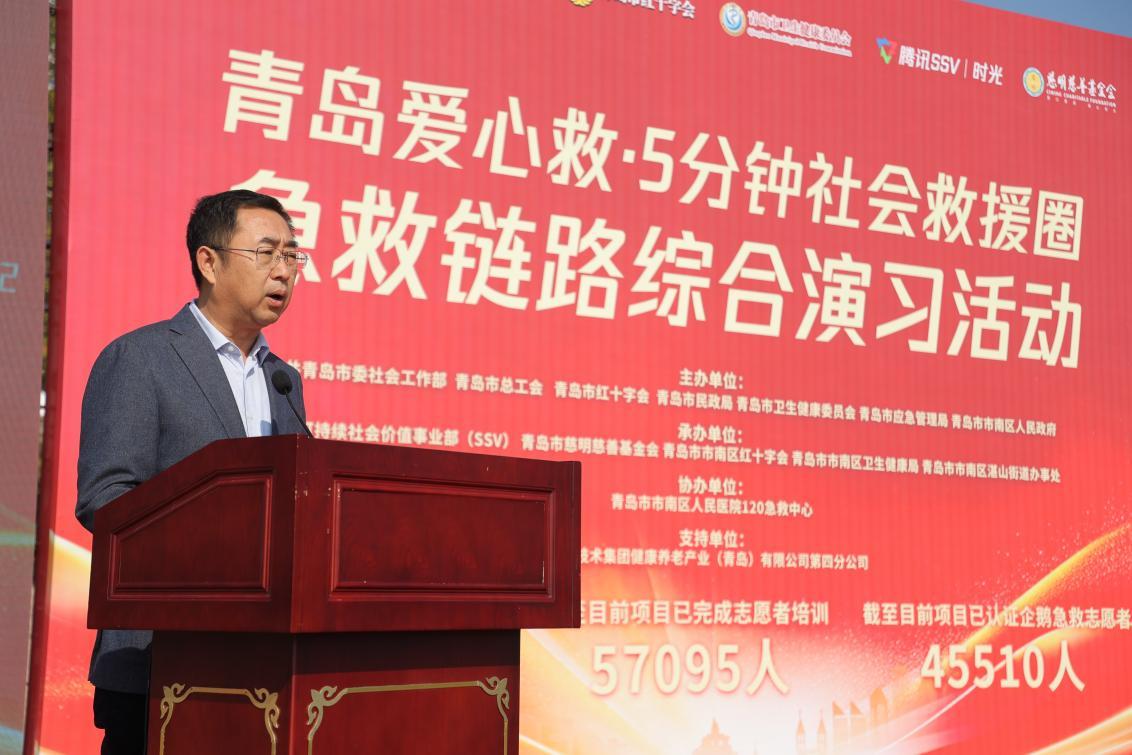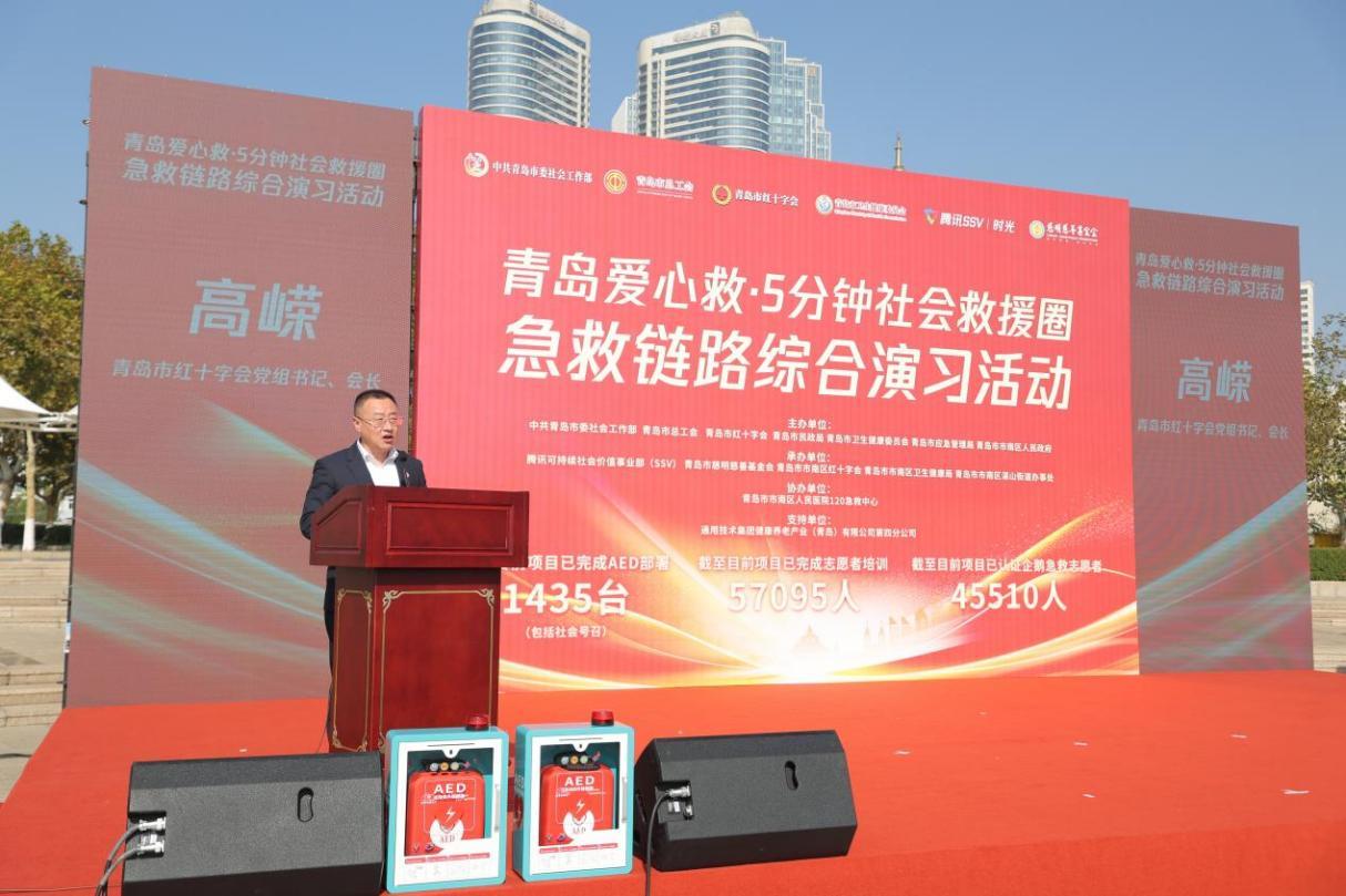 高嵘会长在致辞中提到,市红十字会系统坚持人民至上、生命至上,加强部门协同联动,聚合各方人道力量,强化青岛爱心救·5分钟社会救援圈公益赋能,不断创新应急救护培训模式,目前,全市红十字应急救护取证培训新增5.9万人,位居全省第一。