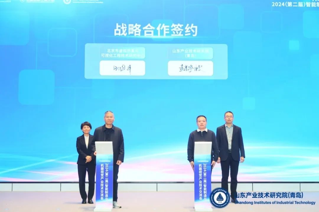 为进一步加速构建机器视觉技术产业生态体系,活动中,产研院与北京市虚拟仿真与可视化工程技术研究中心签署了战略合作协议,双方将以机器视觉技术创新与应用融合为切入点,发挥各自在技术研发、资源链接、人才培养等方面的优势,探索机器视觉技术在智能制造、智慧城市、医疗健康等领域的创新应用,为区域产业升级和经济发展增速.