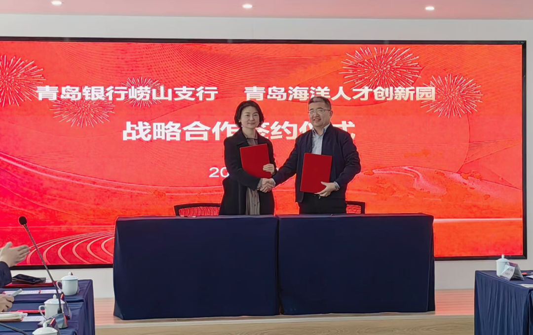 签约仪式上,山东中创企信科技集团董事长王宾,青岛银行崂山支行党总支书记、行长何玲代表双方签署战略合作协议。双方表示将发挥各自资源优势,重点围绕蓝色金融业务,深化在科技金融、普惠金融、数字金融等重点领域合作,推动金融与实体经济紧密结合、相互促进,实现双向赋能。青岛银行崂山支行给青岛海洋人才创新园“场景预授信”5亿元,为入住企业办理的授信业务执行普惠利率,激发园区企业创新活力与发展潜能。