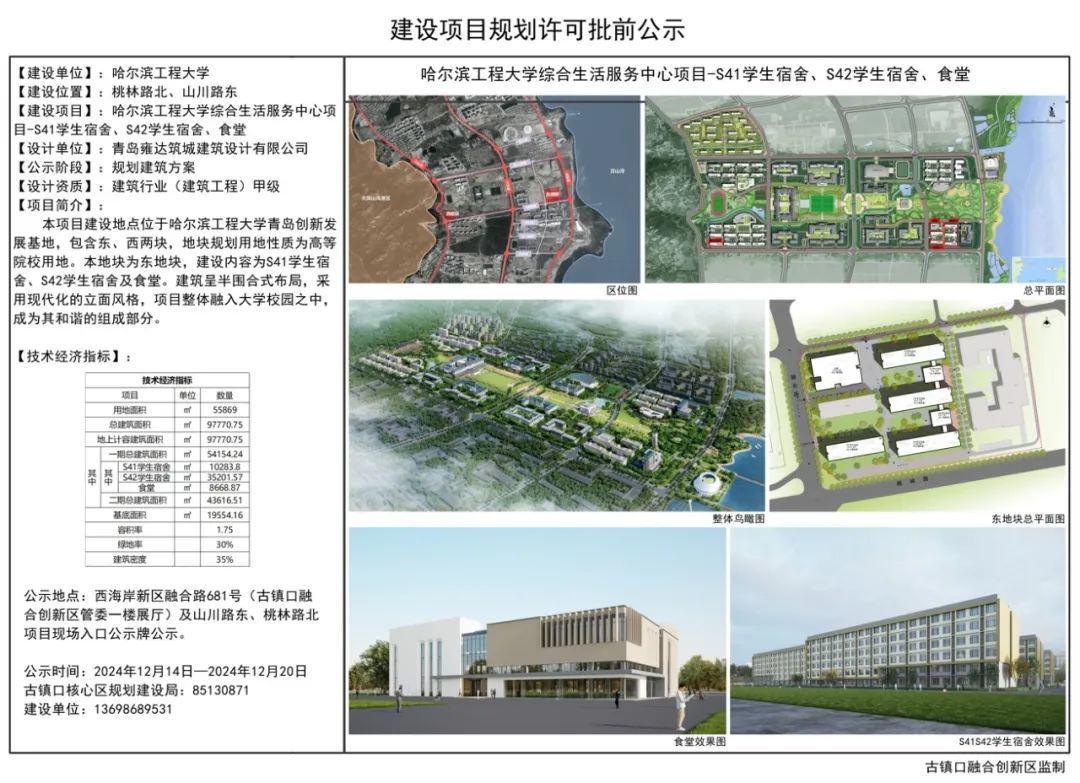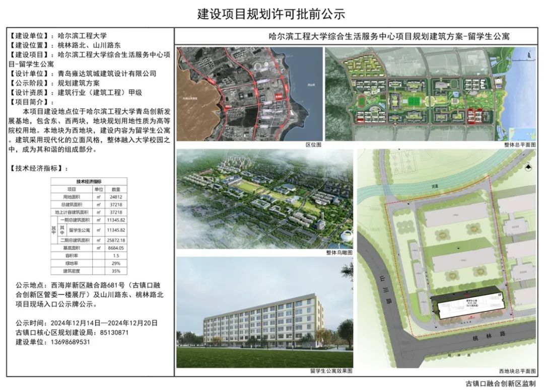 根据公告,哈尔滨工程大学综合生活服务中心项目分东、西两个地块,规划建设学生宿舍、食堂及留学生公寓。