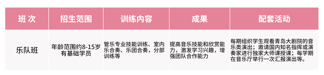 青岛大剧院青少年交响管乐团秉承“指导+舞台”的创新人才培养模式,以专业的师资力量、科学的教学方法、系统的乐团训练,培养兼具优秀器乐表演能力和团队合作性的综合型艺术表演人才。
