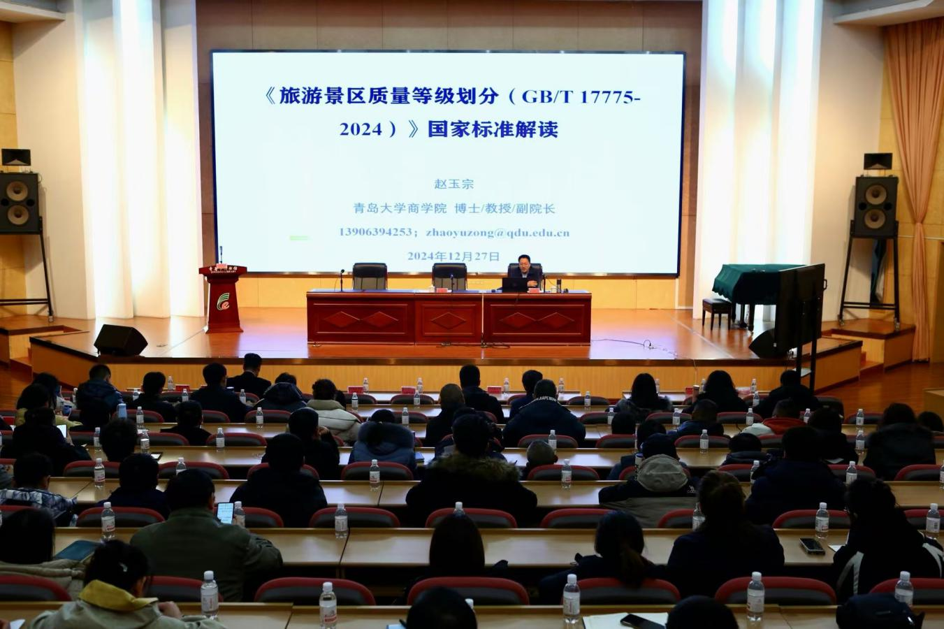会议分两个阶段进行,第一阶段由青岛大学赵玉宗教授就新版《旅游景区质量等级划分》国家标准进行解读。第二阶段的工作会议上,窦文辉一级调研员通报了全市A级旅游景区年度复核检查处理情况,高正佳副局长对2024年全市A级旅游景区焕新行动工作情况进行了总结;市北区文旅局、城阳区文旅局主要负责人就景区管理典型经验作交流发言;与会领导为2024年4家新评定3A级旅游景区颁发了等级标识牌。