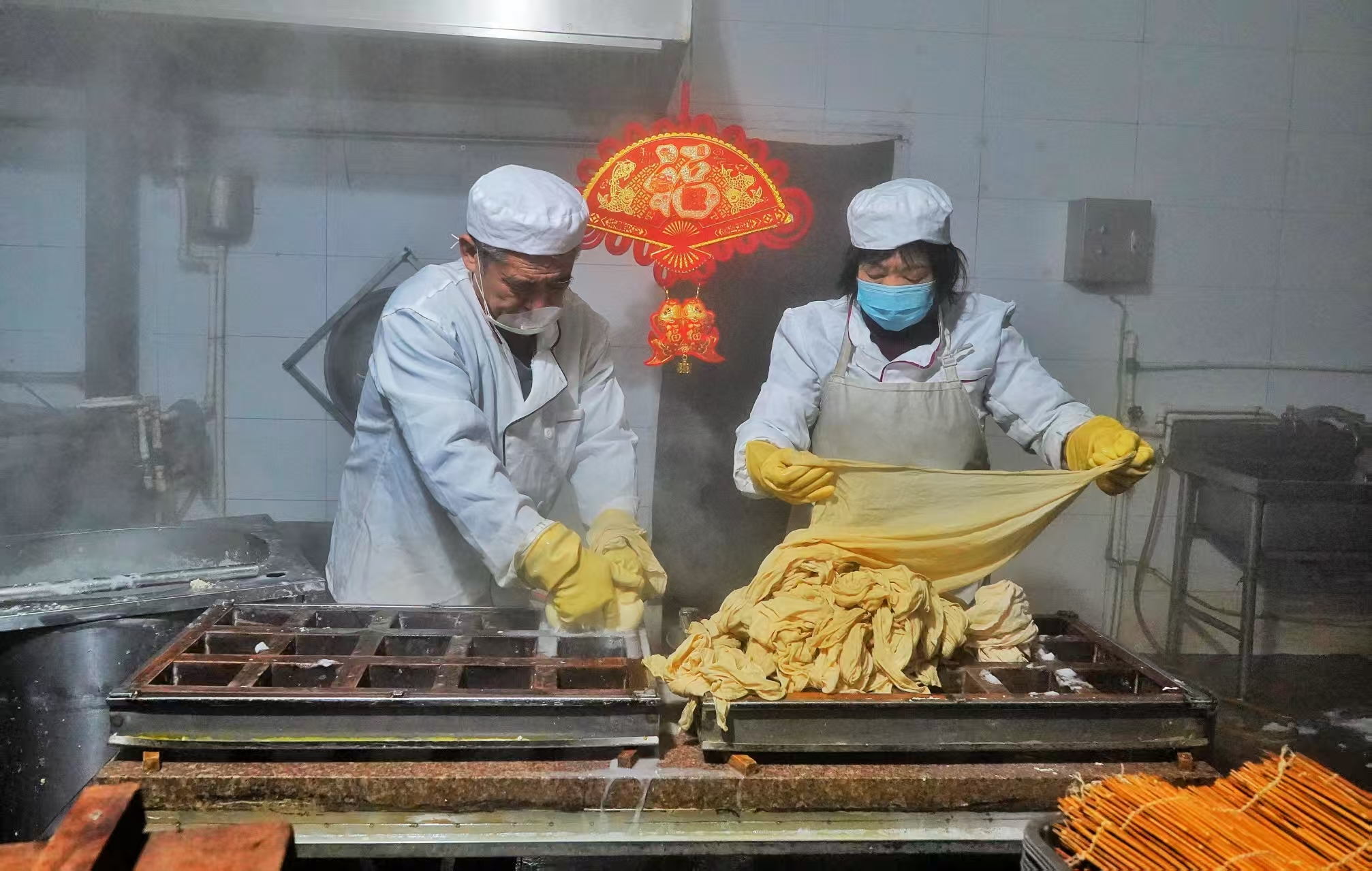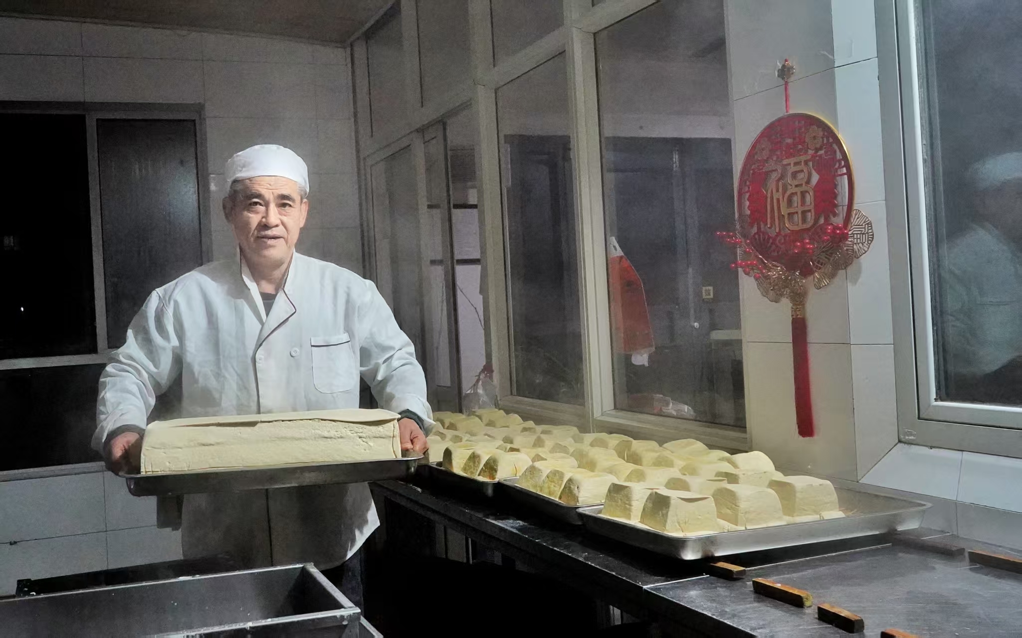 新春佳节,豆腐不仅是一道美味佳肴,更有着“都福”的美好寓意。工坊里,前来购买豆腐的人们络绎不绝,大家都想在春节的餐桌上摆上这道承载着祝福的美食。胡氏豆腐传承人一边忙碌着,一边向顾客讲述着制作工艺和其中的年俗文化,让大家在品尝美味的同时,也感受到非遗文化的魅力。