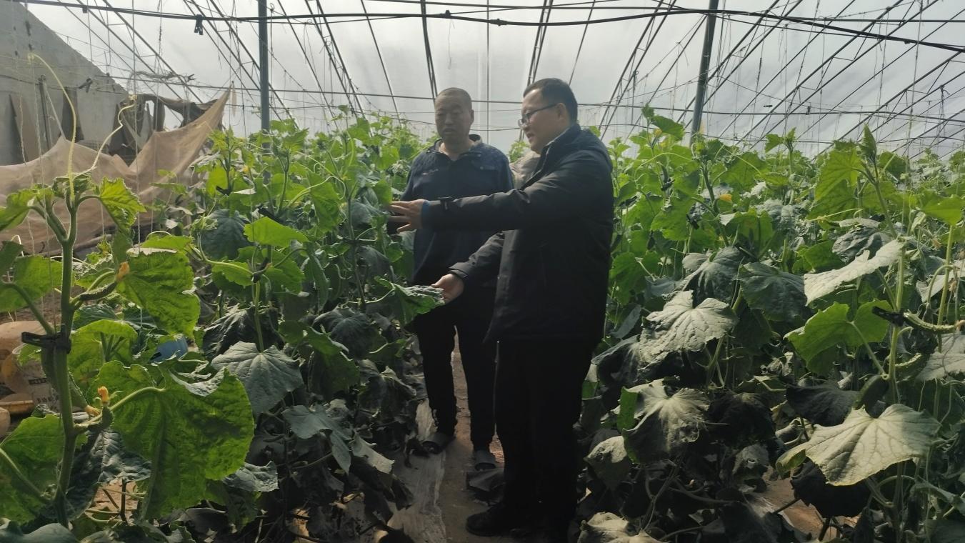 专家团队调研了当地的黄瓜种植品种、栽培技术、种植成本和收益情况等,针对前期降雨降温产生的不良影响,提出低温弱光条件下“提地温、增光照、促壮苗”的黄瓜管理技术,针对黄瓜粉虱、蓟马以及病毒病的防治问题给予详细的技术指导,并重点提醒种植户密切关注春季天气变化,及时修复、加固棚室,预防雨雪、大风等自然灾害。