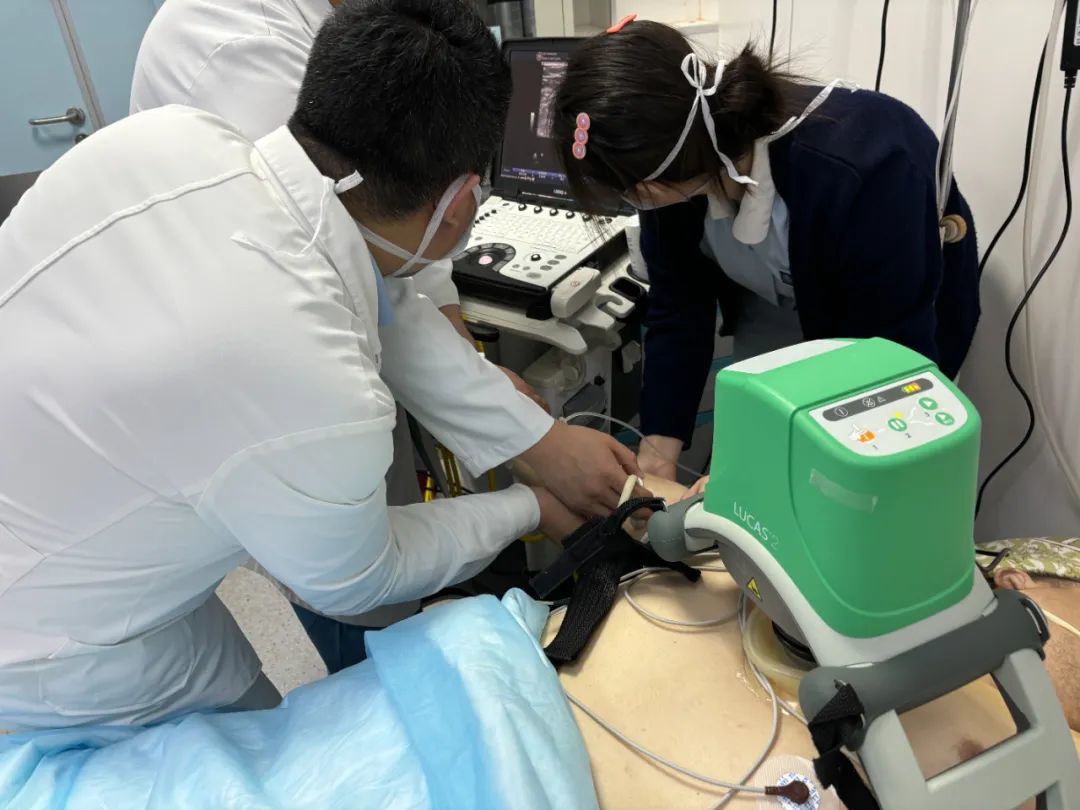作为区域急救核心力量,区中心医院急诊科2024年度ROSC(自主循环恢复)成功率已达48.87%,远超全国平均水平。然而,面对院外心肺复苏普及率低、院内原有抢救条件有限等挑战,建设高标准的独立复苏室成为破局关键。医院积极响应《山东省急诊科建设与管理指南》要求,经科学论证与高效筹备,仅用一周时间完成从方案提交到改建落地的全过程。复苏室为封闭式环境, 配备空气净化系统及重症集成塔台,集成心肺复苏机、除颤仪、呼吸机、床旁超声、亚低温治疗仪等尖端设备,实现急救资源“零距离”协同,为急危重症患者打造“黄金抢救圈”。