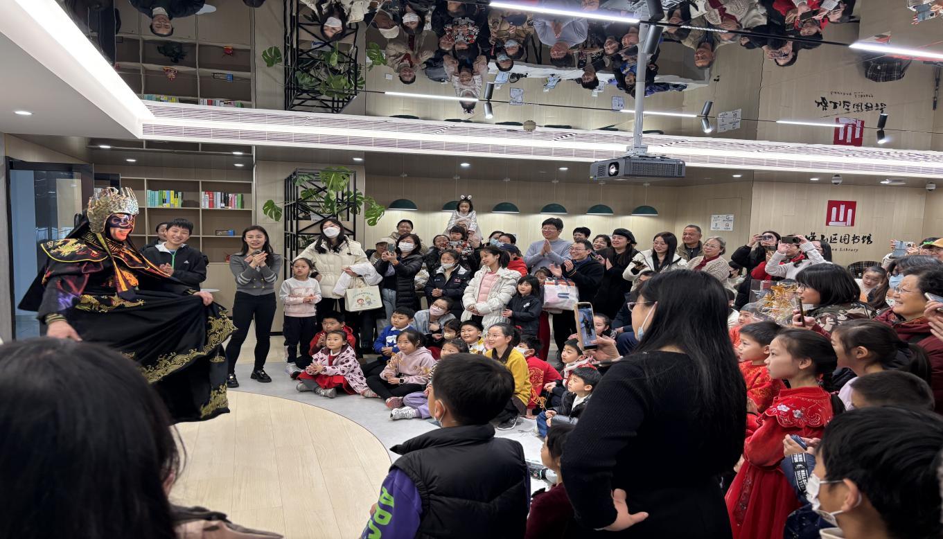 二是举办的“新春韵 书香浓”迎新年年俗文化市集,现场普及了非遗表演项目《变脸》。