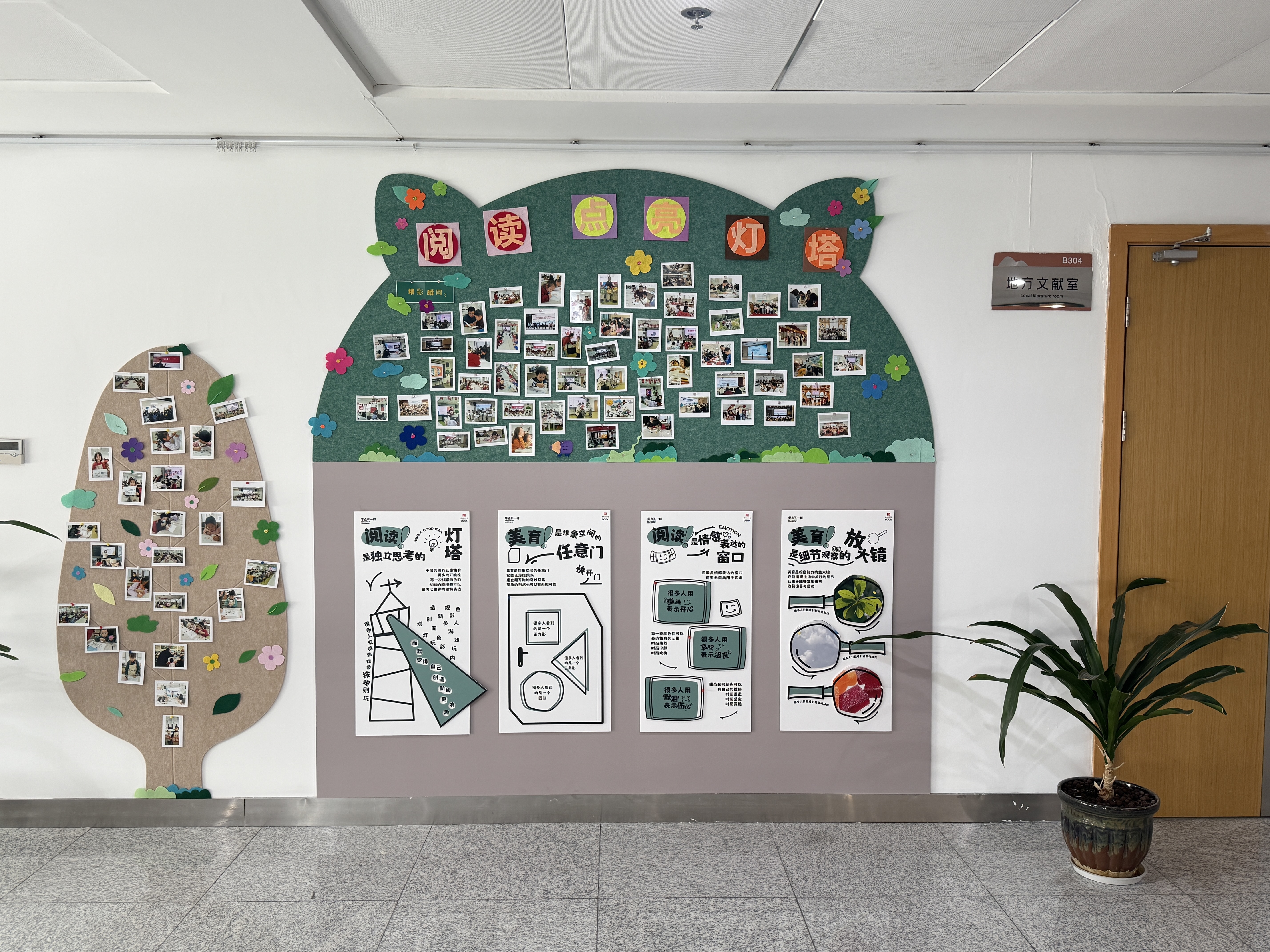 配合数字阅读体验中心的建设,崂山区图书馆在外围阅读推广氛围营造上也做足了功课,对户外墙体进行了阅读互动墙的改造,通过阅读互动墙,向家长传递阅读的价值,引导孩子了解、接受自己的各种情绪。设立阅读树,定期展示活动照片,深入推广全民阅读理念。