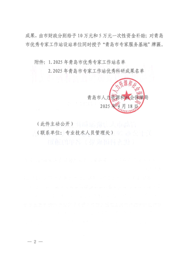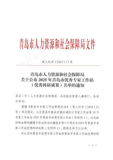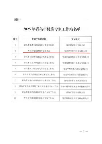 2025年4月18日,青岛市人力资源和社会保障局公示 2025 年青岛市优秀专家工作站评选结果,青岛夏至医疗科技有限公司申报的“青岛市脊柱健康专家工作站”成功入选。这是继2023 年工作站获批设立后,再次凭借卓越的科研成果转化能力与公益实践成效,获得政府与社会的高度认可。