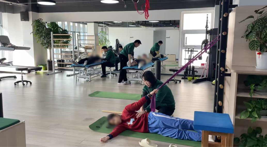2.脊柱侧弯防控我国青少年脊柱侧弯发病率超5%,近1000万青少年受此困扰。这一隐匿性疾病早期症状不明显,但随生长发育可能引发心肺压迫、体态畸形等严重后果。针对这一青少年健康“隐形杀手”,康复师通过动态体态评估和个性化训练方案,对轻中度侧弯患者进行非手术矫正,根据青少年患者每次训练后的肌肉反应、身体耐受度,及时优化训练动作与时长。并联合学校开展早期筛查。 3.脊柱术后康复脊柱骨科术后3个月内是功能恢复黄金期,但较多患者在这一时期内很容易出现肌肉萎缩或筋膜粘连等问题,将直接影响术后恢复效果。工作站创新运用神经肌肉激活技术,结合生物力学矫正训练,系统恢复患者运动功能,改善患者术后恢复效果。