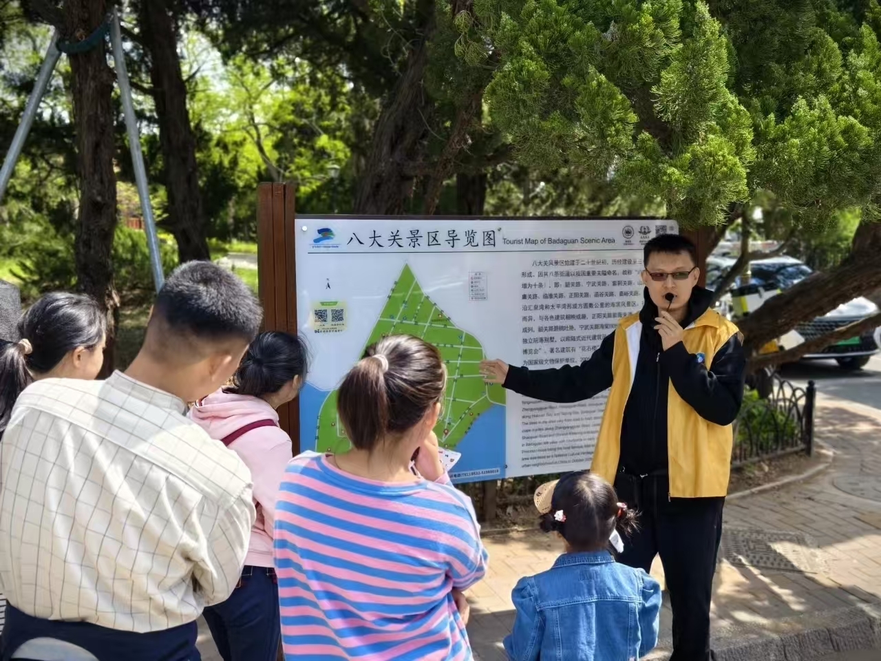 踏入八大关风景区,欧式建筑与绿树成荫的小道交织成一幅幅动人的画面,面朝大海,微风轻柔。景区享有“万国建筑博览会”的美誉。电影《抓娃娃》中马成钢在“西虹市”街头对儿子“父爱如山体滑坡”名场面就是在这里。沿着柏油马路漫步其中,每一步都踏着与马成钢和春兰同频共振的回响。每逢节假日,八大关社区便会组织“景区网格”志愿服务队提供文明引导、暖心服务、免费游览讲解,志愿者带领游客沿山海关路游览,将故事娓娓道来,既让游客朋友们欣赏了景区风光,也深入了解八大关建筑的“前世今生”。“我们希望通过暖心的服务,以及加强对周边旅游秩序的巡逻引导,更好地展现沿海一线的旅游风貌,让大家的旅游体验更加舒适、舒心。”八大关社区工作站站长毕小龙说。