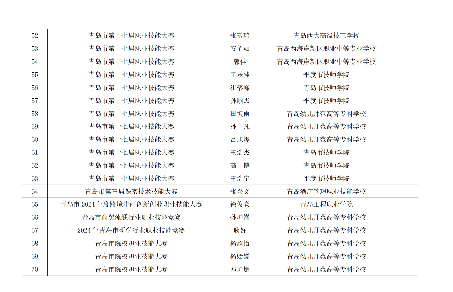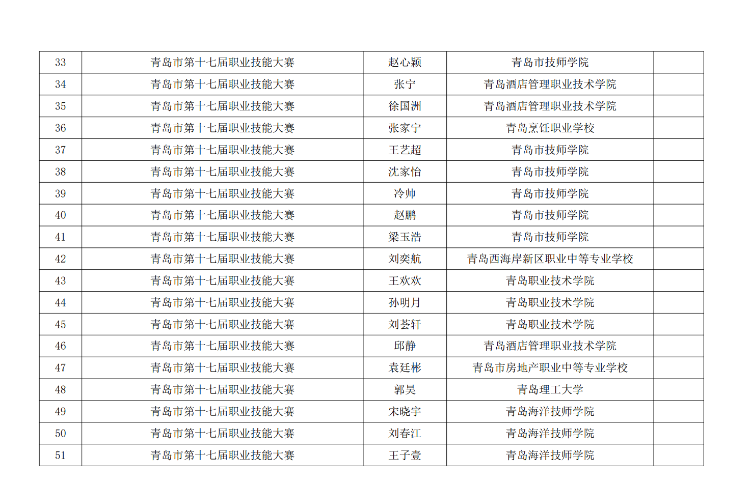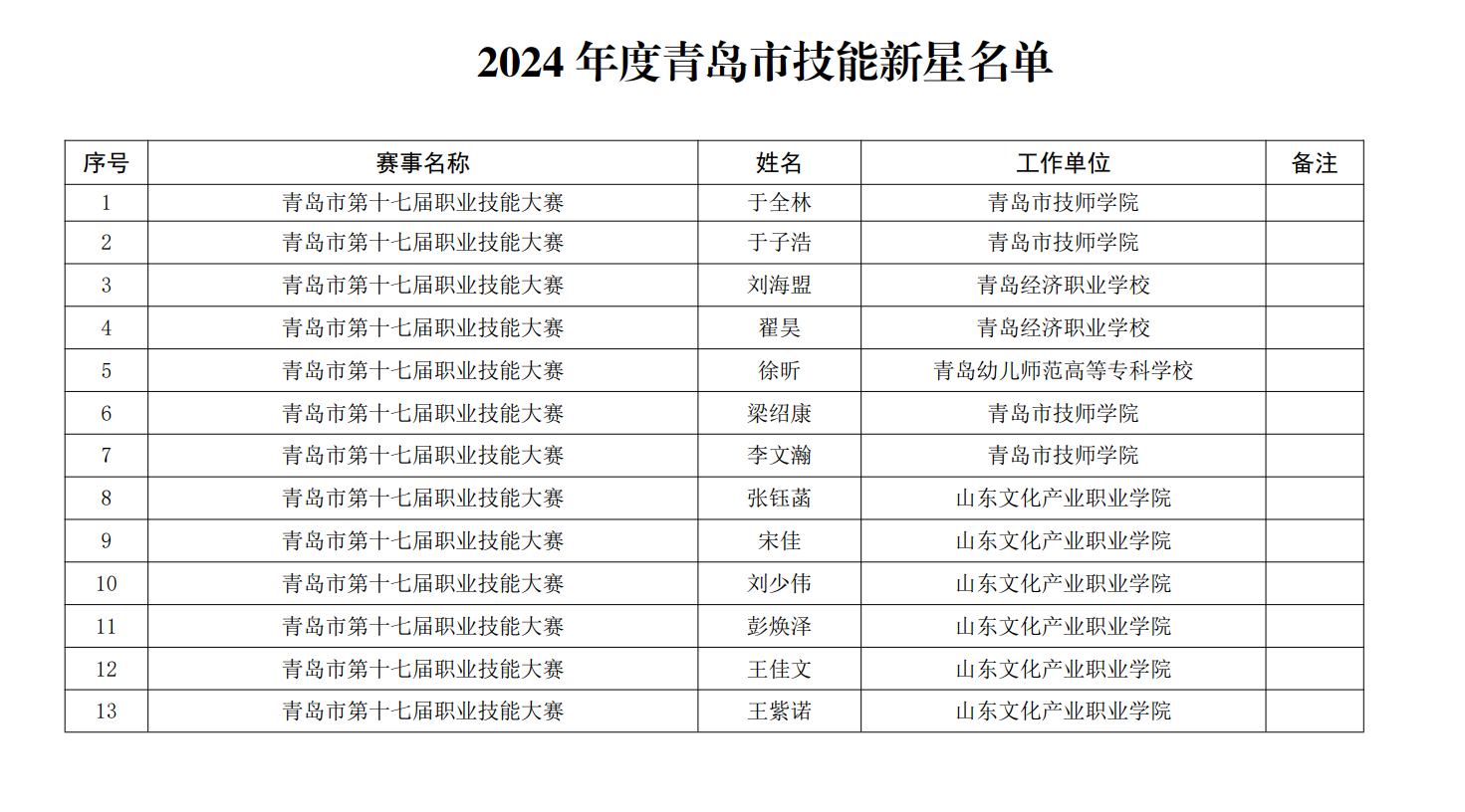 4月25日,青岛市人力资源社会保障局组织召开青岛市第十七届职业技能大赛总结大会。市发展改革委二级调研员崔从河宣读青岛市第十七届职业技能大赛获奖选手、团队及单位名单,授予于全林等93名选手为“青岛市技能新星”。