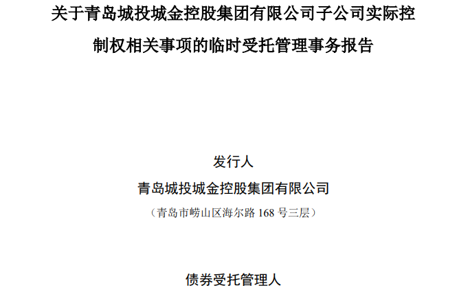 5月7日,中信证券披露了关于青岛城投城金控股集团有限公司(以下简称“城投城金”)子公司实际控制权相关事项的临时受托管理事务报告。