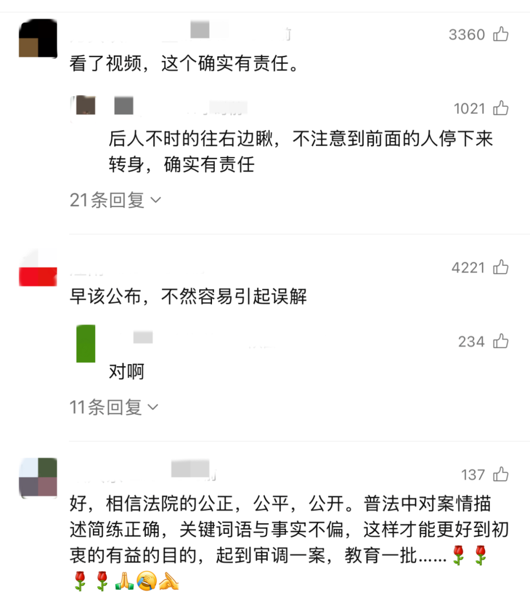 随后案件之所以会在网上引起轩然大波,原因是法院把这起案子当成普法案例来宣传,但在具体阐述中法官的表述不当,不仅把案件真相说错了,甚至还出现了“行人未保持安全距离”这样的错误论断。