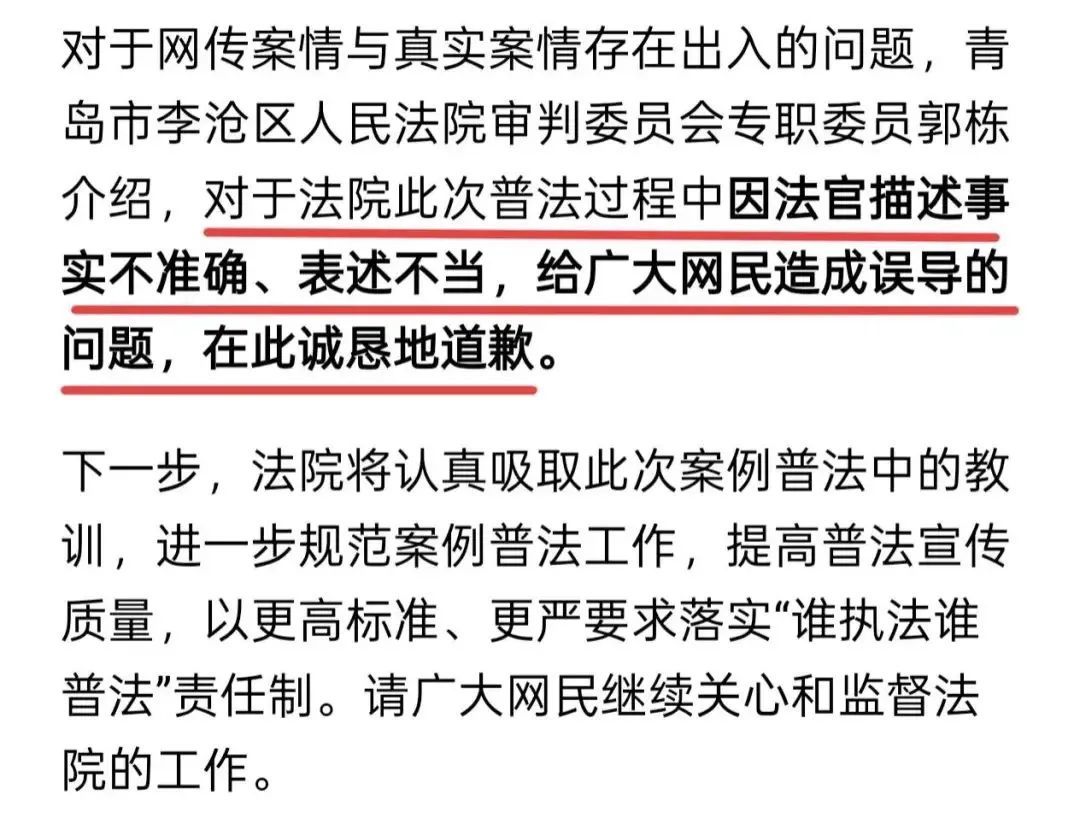 值得肯定的是,青岛法院及时公布事发时的监控,并坦诚承认了错误并道歉。