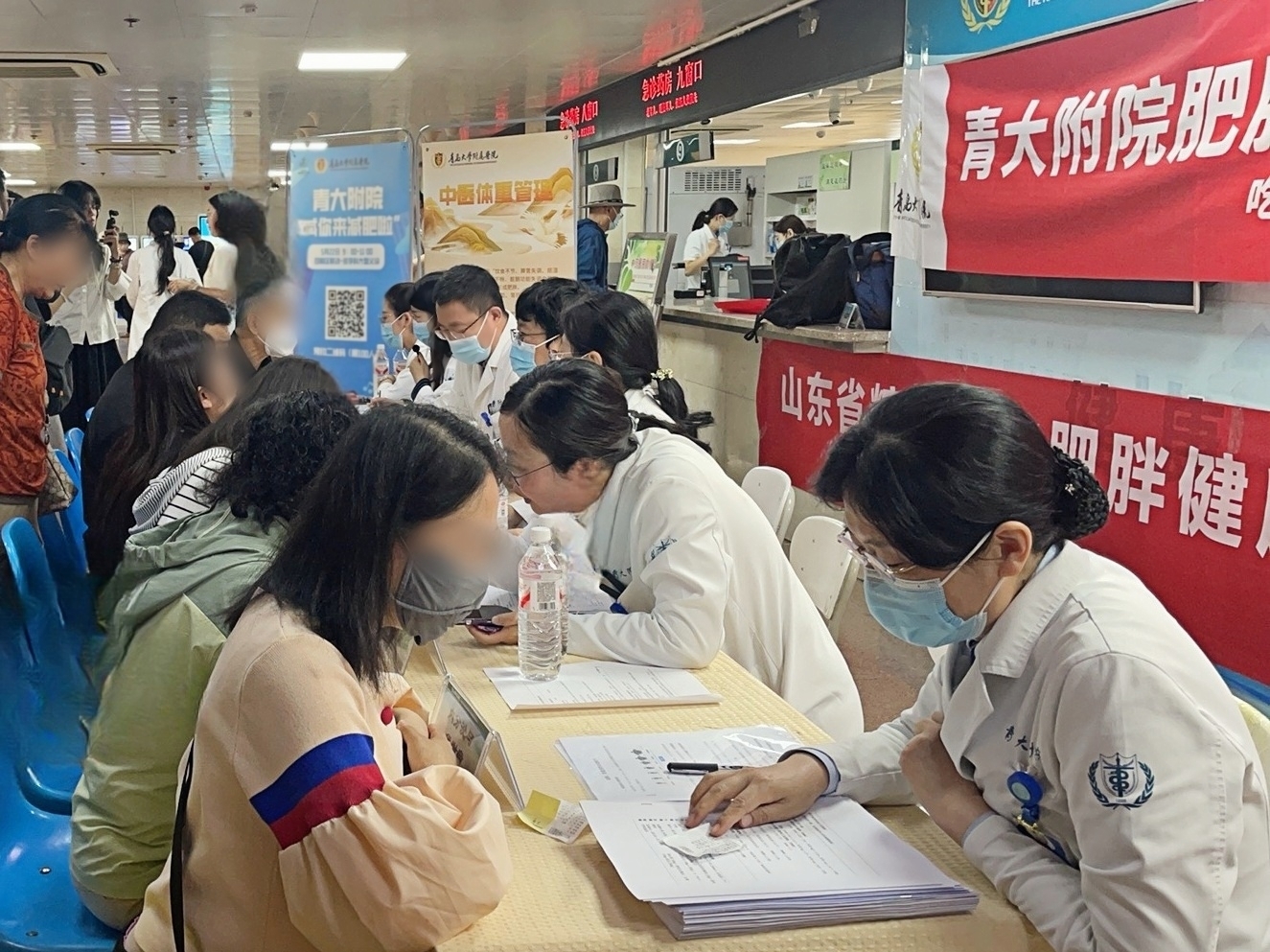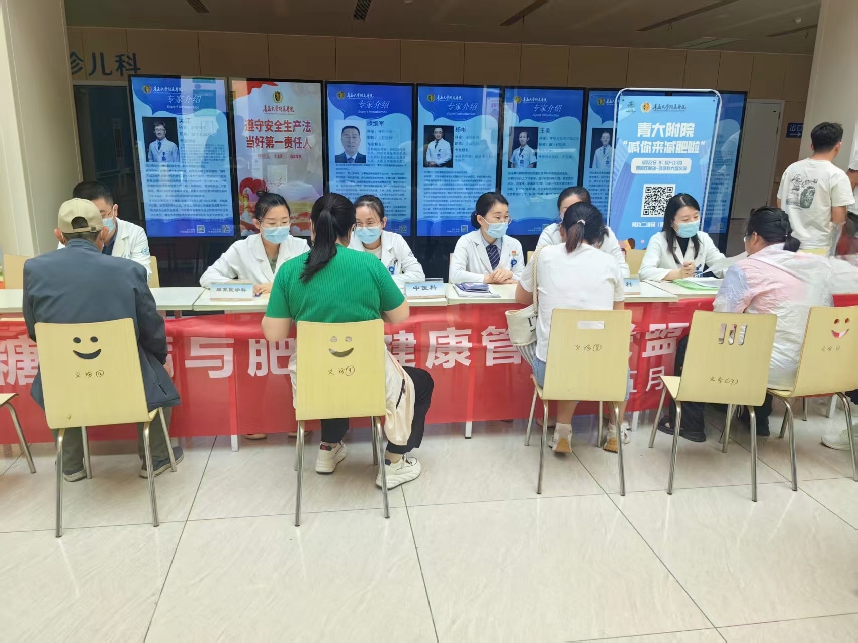 内分泌与代谢性疾病科、康复医学科、中医科、临床营养科、胃肠外科团队在西海岸院区门诊大厅开展义诊活动。