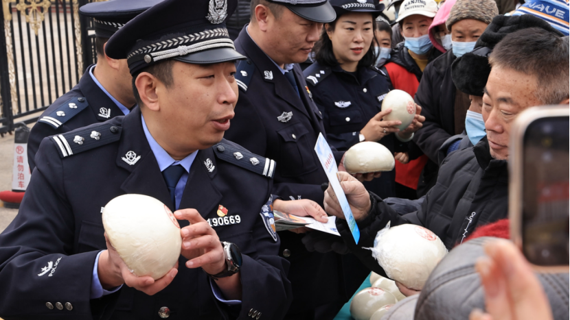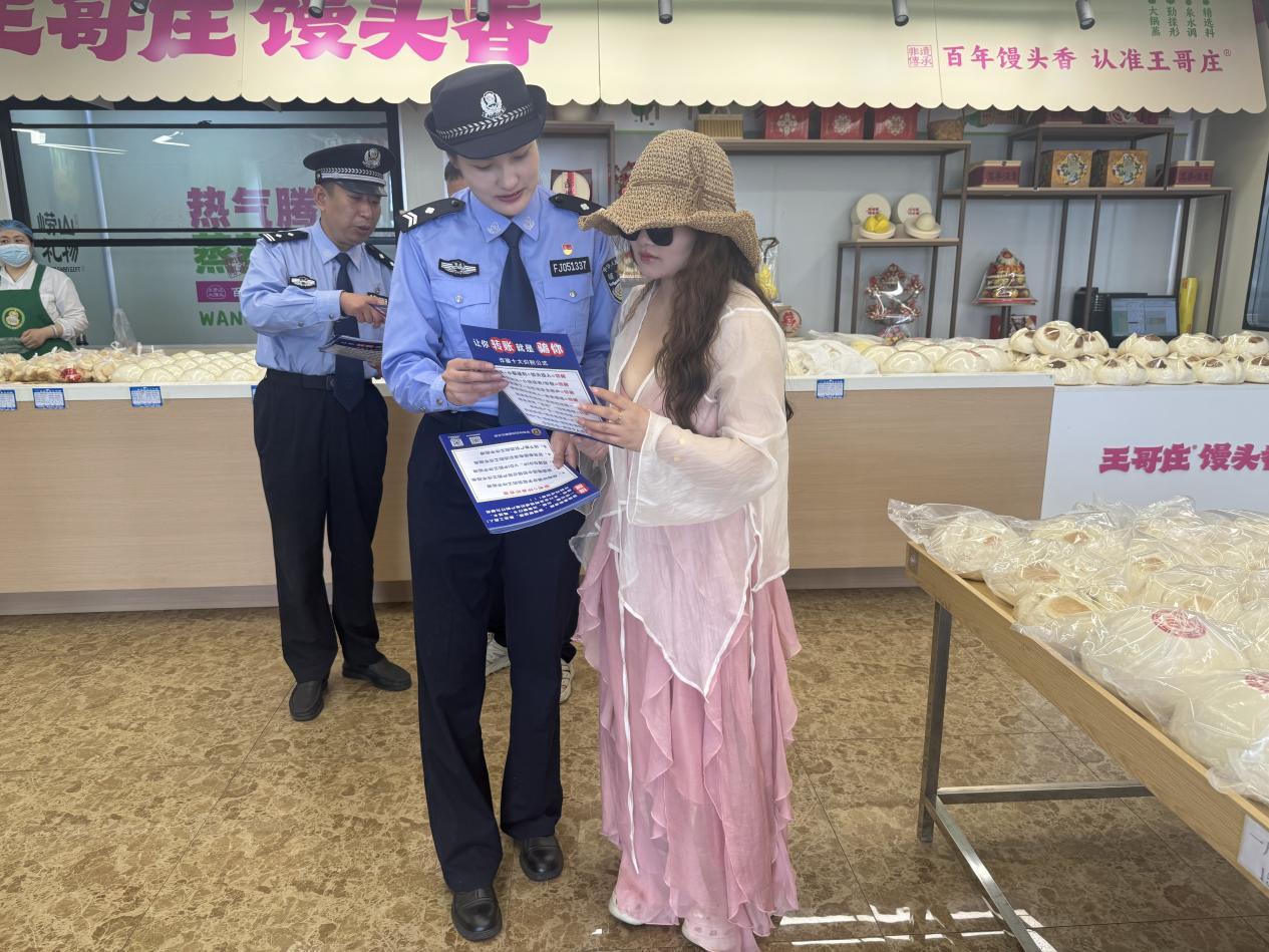 “大姨,这馒头不光能吃,还能防骗!”民警王猛将热气腾腾的“反诈锦囊”递给赶集的王大娘。民警们预先根据辖区高发案件制作了朗朗上口的防诈口诀,在领取馒头的同时学习并认识到最新的诈骗手段,增强反诈意识。随着大馒头一起的还附有派出所定制的“平安符”——反诈十大公式,民警们将非遗纹样与反诈元素相结合,既实用又具收藏价值。