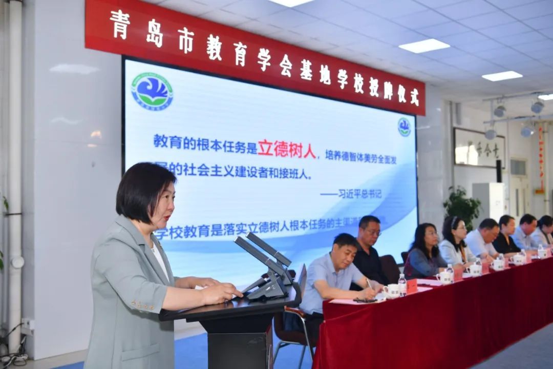 2025年6月5日,青岛市教育学会基地学校授牌仪式在青岛文正小学阶梯教室举行。青岛基隆路小学获评德育教育基地学校殊荣。邱琳校长现场作主题发言,系统阐述了学校以“翔宇少年”品牌为核心,全面落实立德树人根本任务的教育实践体系。
