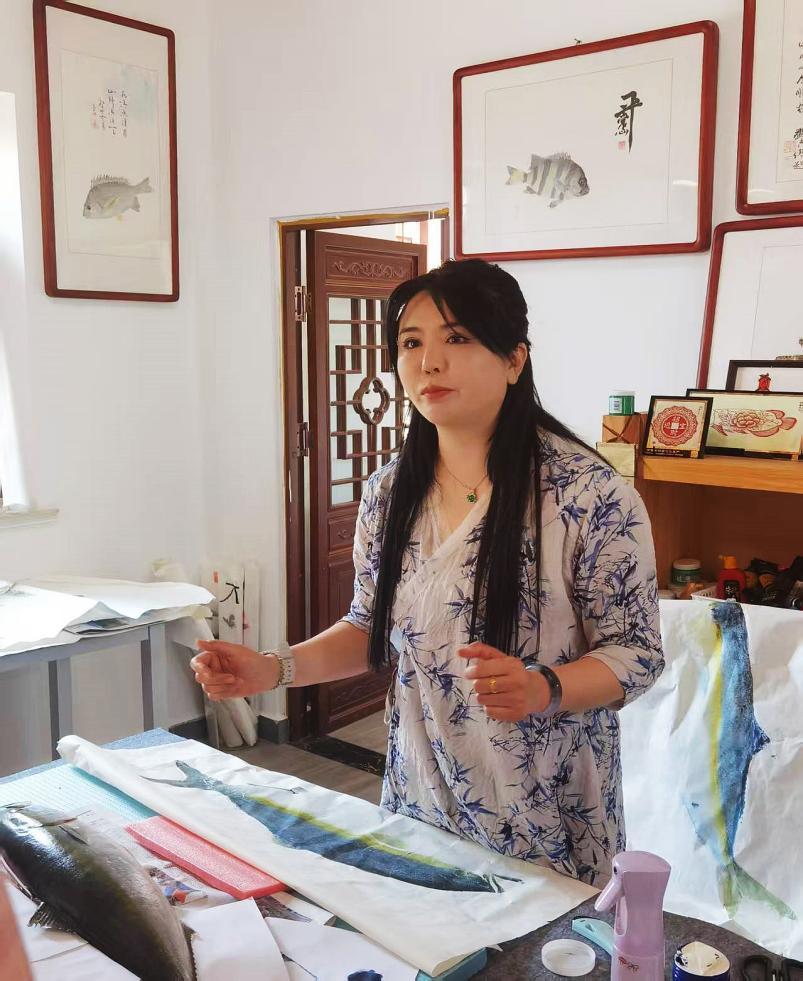 在王炳娜的匠心耕耘下,鱼拓艺术正突破传承困境,通过技艺革新与现代审美融合,迎来兼具文化厚度与市场活力的发展新机遇。她以材料改良、工艺重构等方式,让这门古老技艺逐步具备对话当代艺术的能力。