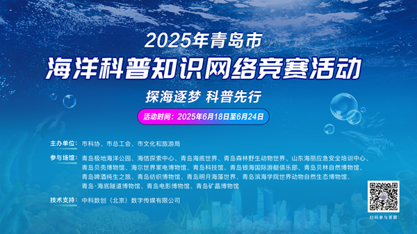 为落实《全民科学素质行动规划纲要(2021-2035年)》,普及海洋科学知识,提升全民海洋科学素质,推进建设青岛海洋科普之城,市科协联合市总工会、市文化和旅游局组织开展2025年青岛市海洋科普知识网络竞赛。本次活动以“探海逐梦 科普先行”为主题,自6月18日开始,6月24日结束。在为期一周的竞赛时间内,面向全体市民推出“网络答题赢科普场馆门票”活动。