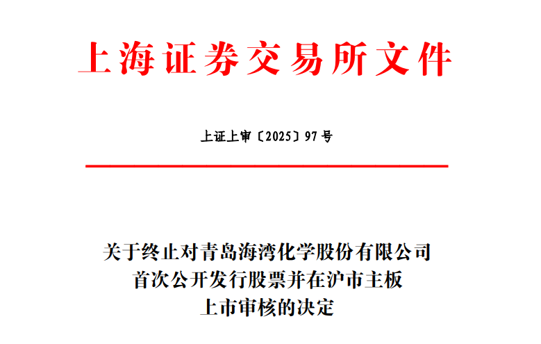 6月20日,青岛海湾化学股份有限公司(以下简称“海湾化学”)上交所主板IPO审核状态变更为“终止”。