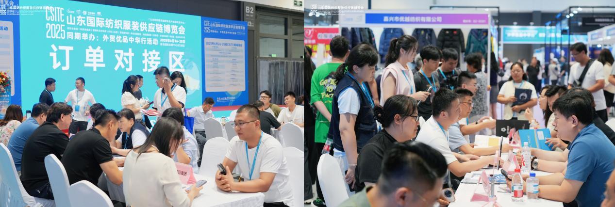 同期举办的“外贸优品采购对接会”成为活动亮点,吸引了希音、南极电商、北京零度、小米供应链-完型科技、香港GSS开捷饰、片断女装、威海联桥集团、迪尚集团、青岛即发、绮丽集团等20余家知名品牌及供应链企业参与。通过品牌展示、供需对接、订单洽谈等形式,活动为企业搭建高效商贸平台,助力拓展市场渠道,促进产业链深度合作。