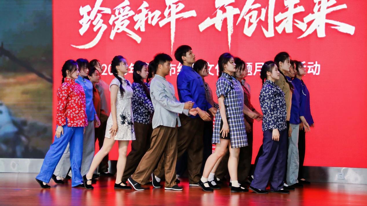 萨克斯独奏《白毛女·窗花舞》以西洋乐器演绎红色经典,传统旋律与现代技法碰撞出新时代的红色回响;女小合《飘落》以柔美的嗓音与和谐的旋律,轻声诉说着过往的风云与当下的和平宁静;模特表演《山河赋》则将非遗元素与现代舞美结合,展现中华文化之美。