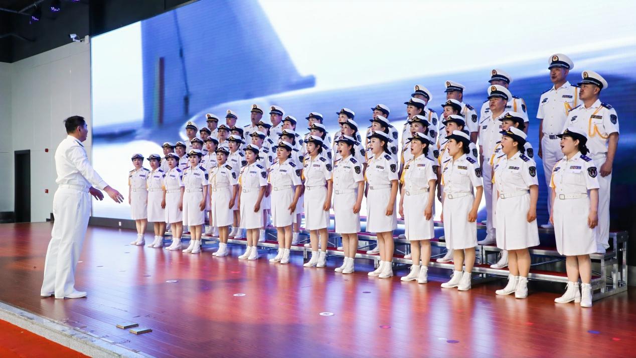 萨克斯合奏《走向复兴》气势恢宏,多把萨克斯齐鸣,奏响了时代奋进的强音。大合唱《军港之夜》《海上轻骑兵》将演出推向高潮,全体演员齐声高歌,唱响了对海军战士们守护海疆的崇敬与赞美,唱出了时代赋予的豪迈与担当,让观众在激昂的旋律中深切感受到红色文化的强大凝聚力与号召力。